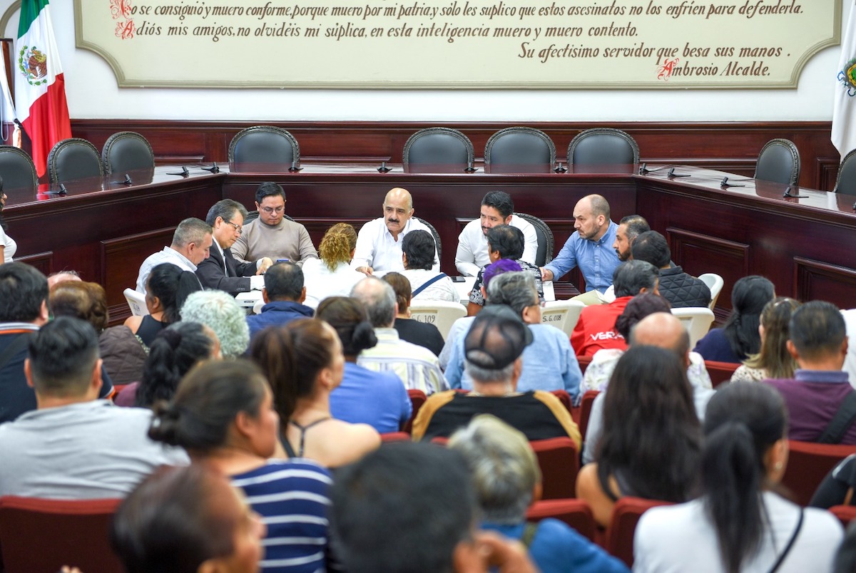 En la Sala de Cabildo, acompañado por los regidores Antonio Ballesteros Grayeb, Daniel Fernández Carrión y el director de Participación Ciudadana, Juan Marín Viveros, el Edil también canalizó a las áreas correspondientes solicitudes relacionadas con la construcción de obras de protección civil, pavimentaciones y la rehabilitación de vialidades.