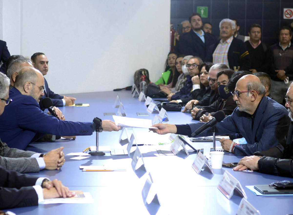 En la reunión, efectuada en la Dirección de Relaciones Laborales, el secretario Administrativo de esta casa de estudios, Luis Agustín Álvarez Icaza Longoria, acompañado por el abogado general de la UNAM, Hugo Alejandro Concha Cantú, entregó el ofrecimiento al Comité Ejecutivo del STUNAM, encabezado por su secretario General, Carlos Hugo Morales Morales.