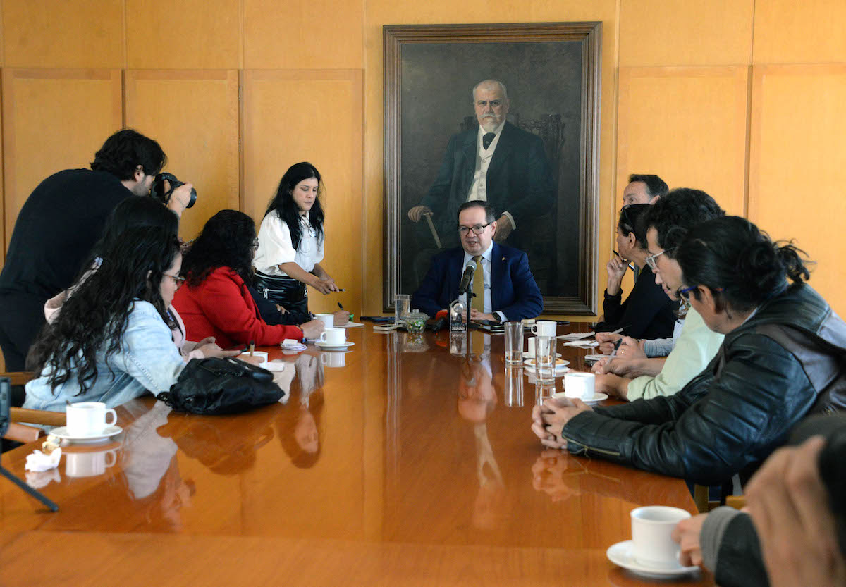 En un encuentro con los representantes de medios de comunicación que cubren el sector universitario, Lomelí Vanegas señaló la importancia de que la Universidad Nacional pueda cumplir con sus funciones sustantivas en un ambiente de tranquilidad, propicio para el trabajo académico.