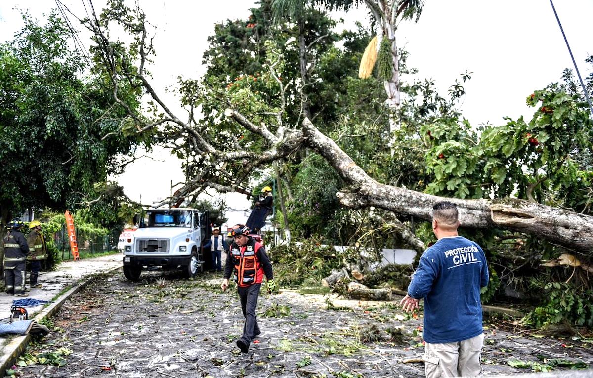 Xalapa, Ver., 10 de diciembre de 2023.- Derivado de los efectos del Frente Frío Número 16 que generó vientos fuertes desde la mañana hasta el medio día, la Dirección de Protección Civil en coordinación con las áreas operativas municipales han atendido hasta el momento un promedio de 25 árboles caídos.