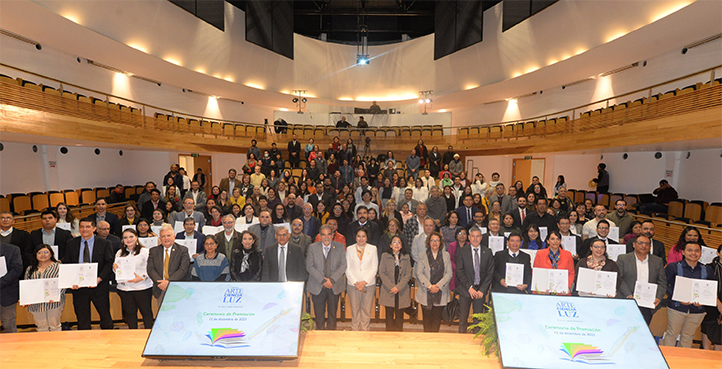 Xalapa, Ver., 12 de diciembre de 2023.- La Universidad Veracruzana (UV) reconoció con el Premio “Arte, Ciencia, Luz” a las y los estudiantes que realizaron los mejores trabajos recepcionales en los niveles de Especialización, Licenciatura, Maestría y Doctorado, en una ceremonia llevada a cabo en la Sala Anexa de Tlaqná, Centro Cultural, encabezada por el rector Martín Aguilar Sánchez.