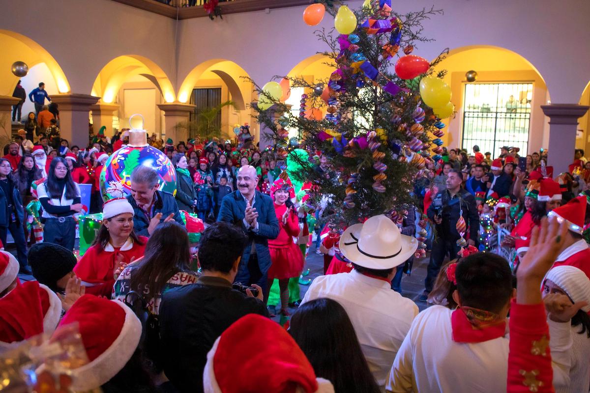 En nombre de niñas y niños de los jardines de niños y preescolares «Carlos Rodríguez Calderón», «Cristobal Colón», «José Vasconcelos», «Enrique Laubscher», «Noxinach», «Juan de Dios Peza», «Ángela Gómez de González», ‘Trinidad Pérez González», Fovissste Vespertino y «Bertha Hernández Díaz», estudiantes del preescolar «Juan Escutia» cantaron la tradicional Rama Navideña.