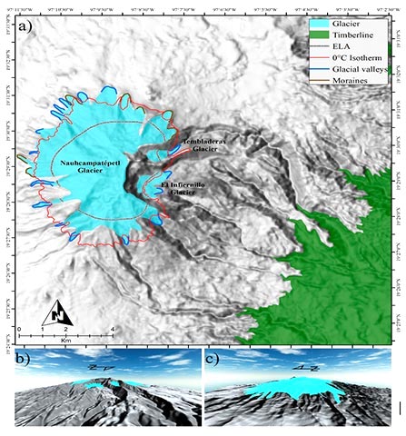 Con la información obtenida reconstruyeron tres glaciares que existieron en el Cofre de Perote —uno grande y dos pequeños—, los cuales dejaron huellas; por ejemplo, cerca de la cima hay una gran extensión de roca pulida y con ralladuras, como si hubieran sido hechas por un esmeril, evidencia de que hubo hielo glaciar.