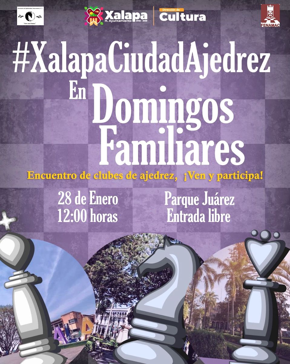 Xalapa, Ver., 22 de enero de 2024.- Para seguir consolidando a la capital veracruzana como ciudad del ajedrez e impulsar esta actividad en espacios al aire libre, la Dirección de Cultura del Ayuntamiento de Xalapa realizará una vez al mes el Encuentro de Clubes de Ajedrez, como parte del programa “Domingos Familiares” que se desarrolla en el parque Benito Juárez.