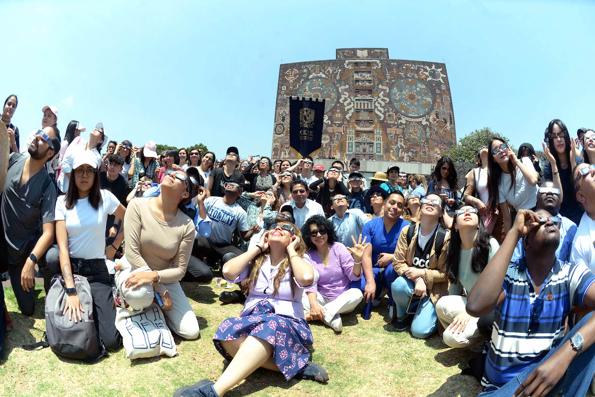 Con el eclipse en tránsito, Alejandra miraba al centro de la obra que cumplirá en unos días 45 años. “Mi relación con la Universidad viene de todas nuestras generaciones que han estudiado y estudian aquí y que son parte de México, ¡creo que todos somos la UNAM!”.