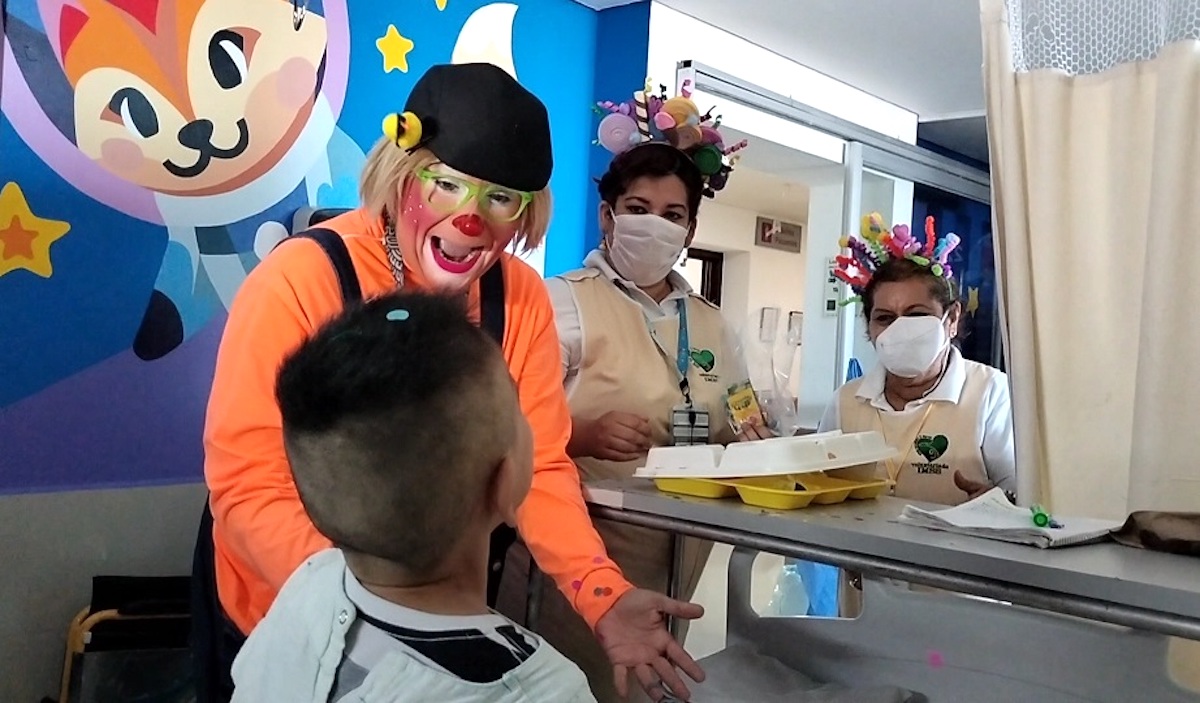 El químico clínico Cristian Torres Azuara mejor conocido por sus compañeros como “Payaso Banano Burbuja” acompañó a las damas Voluntarias, ofreciendo un momento de diversión para las niñas y los niños. Expresó “me gusta colaborar con algunos compañeros, trayendo un poquito de diversión, algunos juguetes, dulces, para tratar de mitigar un poquito todo ese padecimiento que los niños tienen a la hora de estar aquí internados”.