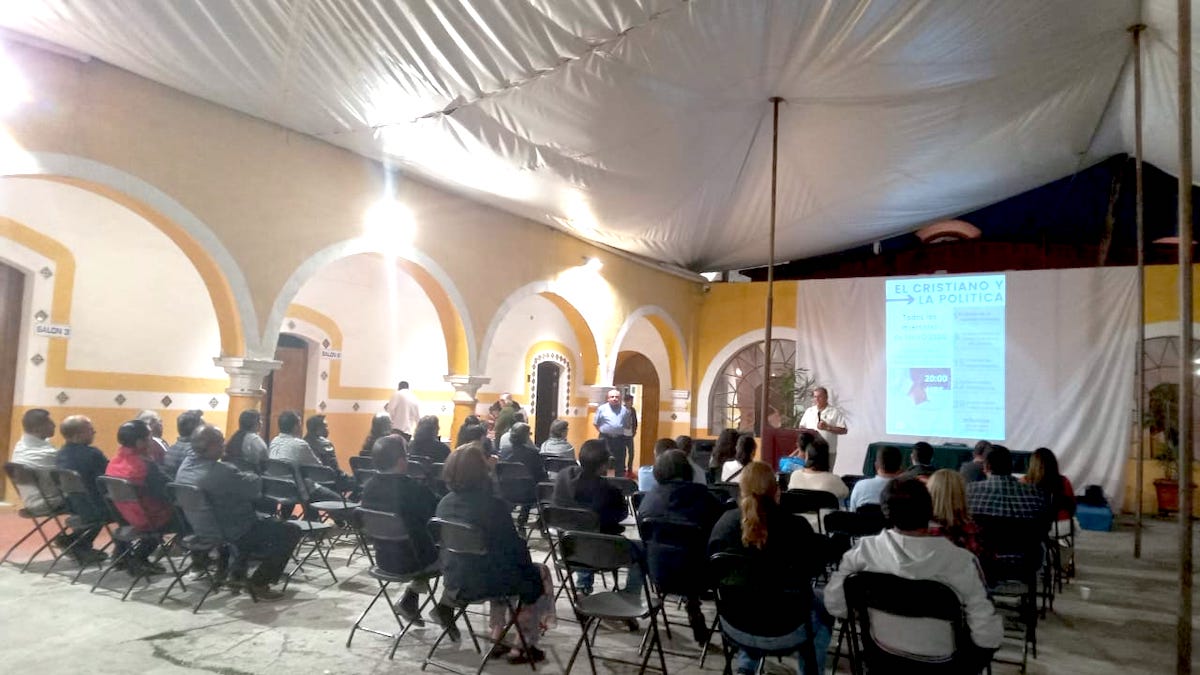 Con un buen número de participantes peroteños, amas de casa, profesionistas, trabajadores de la construcción, docentes, jóvenes y adultos, a las 8 en punto de la noche, el primer día de mayo, en el patio central de la Parroquia San Miguel Arcángel de Perote, Ver, la Organización Ciudadana, MISIÓN RESCATE MÉXICO comenzó el Taller de Participación Ciudadana titulado EL CRISTIANO Y LA POLÍTICA.