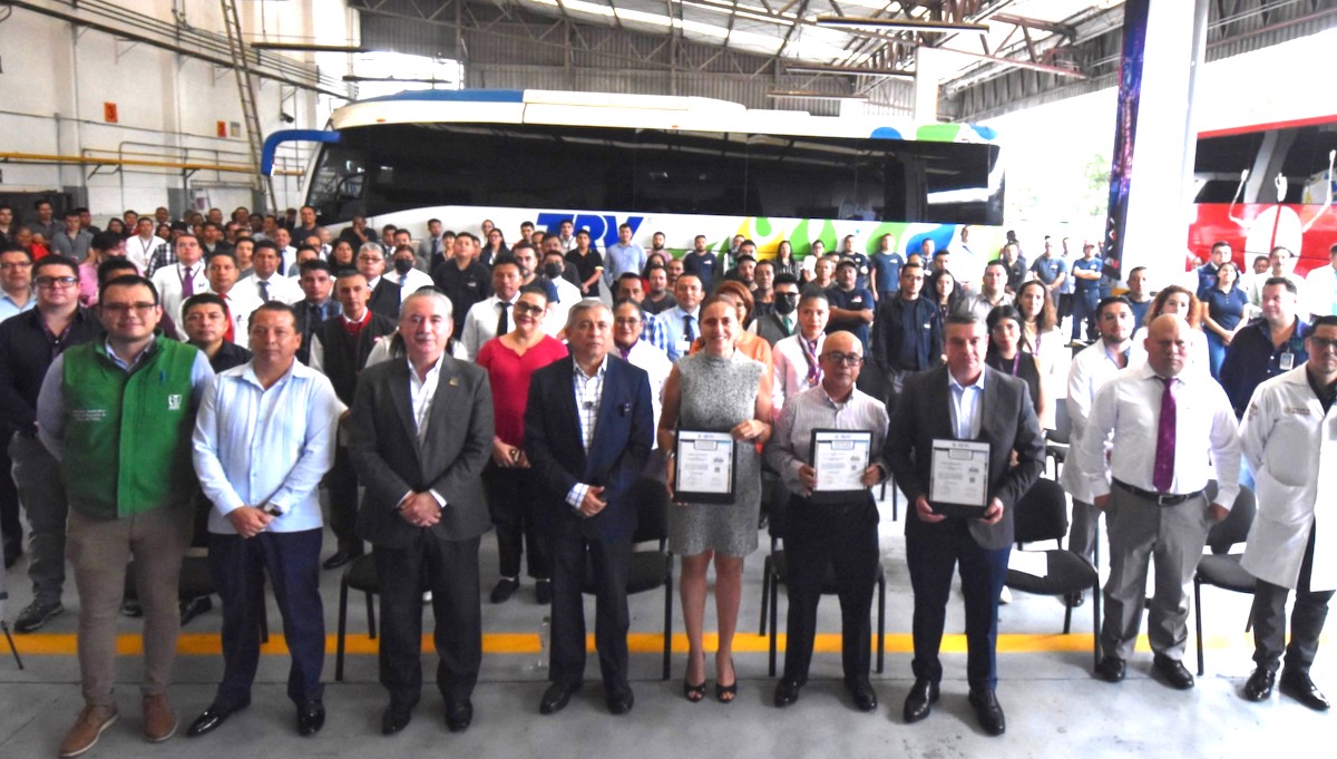 Xalapa, Ver., 25 de julio de 2024.- El Instituto Mexicano del Seguro Social (IMSS) en Veracruz Norte entregó tres Distintivos ELSSA (Entornos Laborales Seguros y Saludables) a la empresa de transporte Grupo Mobility ADO Región Golfo Centro, por generar las condiciones e identificar los factores de riesgo para prevenir accidentes, además de mejorar la seguridad y salud en el trabajo.
