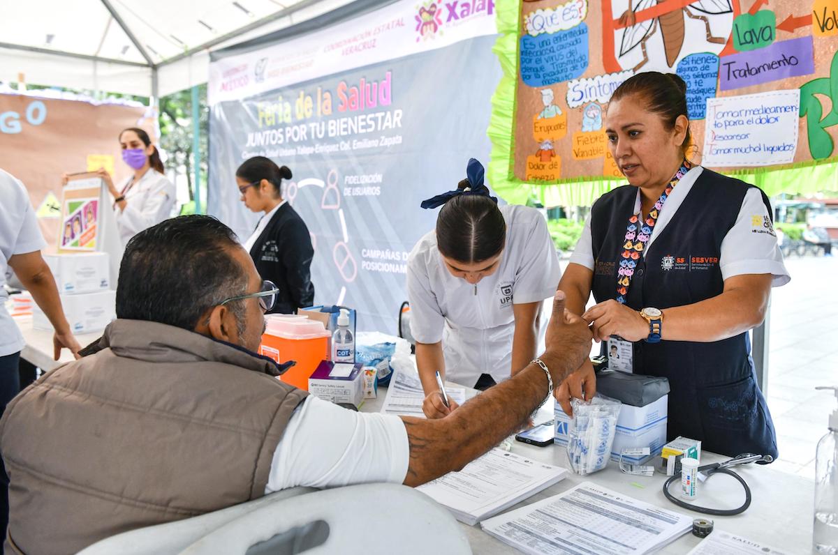 Xalapa, Ver., 26 de julio de 2024.- Con el objetivo de ofrecer servicios de salud gratuitos a la población y prevenir enfermedades, este viernes se llevó a cabo en el parque Benito Juárez la Feria de la Salud “Juntos por tu Bienestar”, iniciativa en la que colaboran los Servicios de Salud de Veracruz, la Secretaría de Salud, los servicios de salud IMSS-Bienestar y el Ayuntamiento, a través de la Dirección de Desarrollo Social.