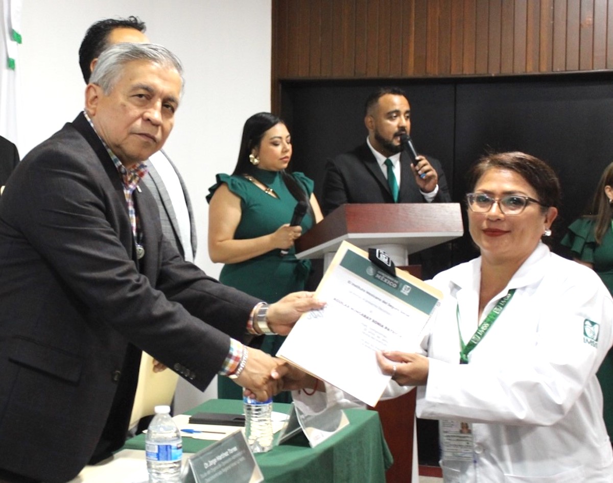 El evento estuvo encabezado por el titular de la Representación, doctor Jorge Martínez Torres, quien durante su intervención apuntó “me honra el poder hacer un reconocimiento a aquellas personas trabajadoras que se destacan por su desempeño y antigüedad laboral; hoy el IMSS es un organismo diferente al que conocieron las generaciones anteriores, es una institución moderna que trabaja día cada día en la mejora de sus servicios”.