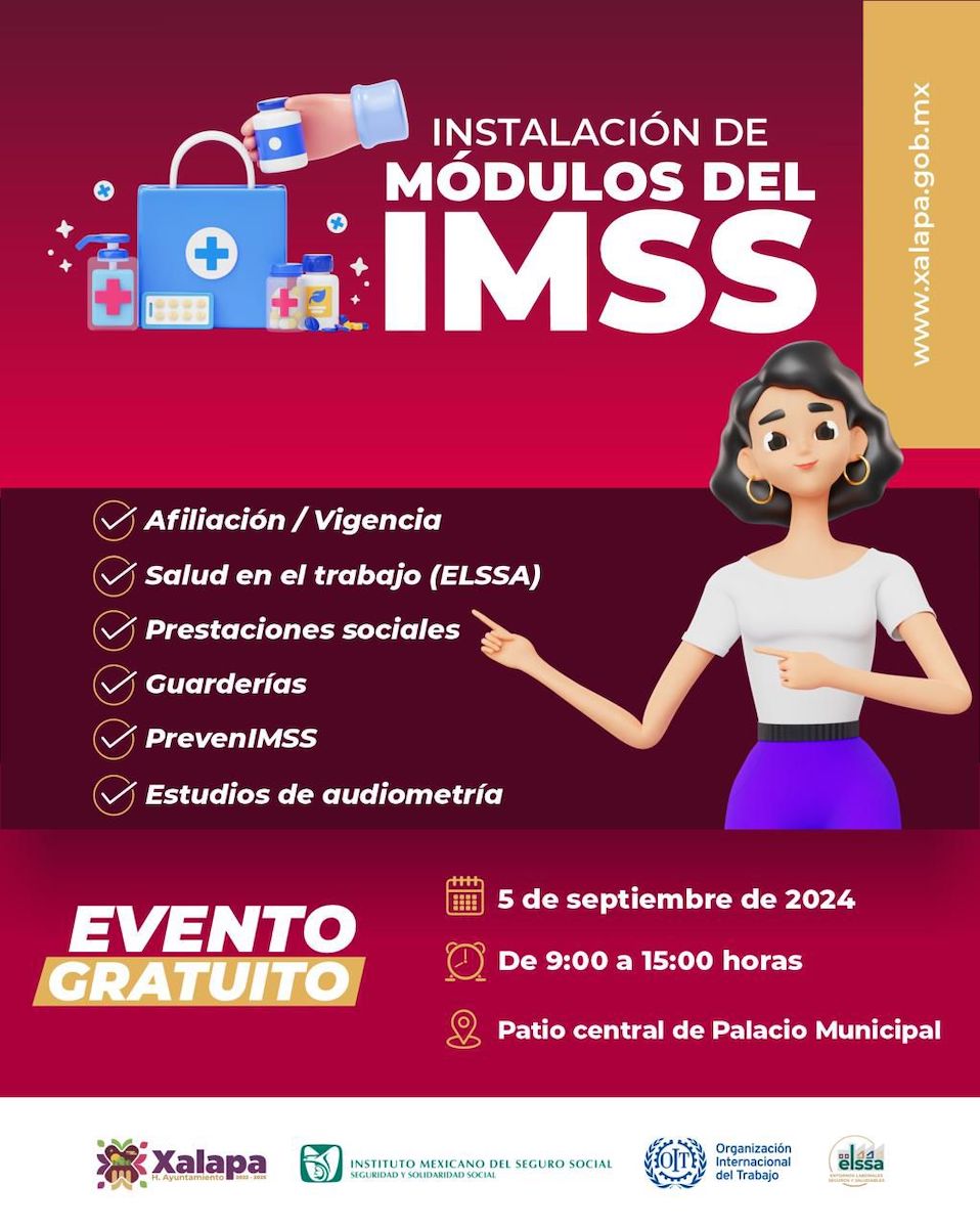 Xalapa, Ver., 04 de septiembre de 2024.- Por instrucciones del alcalde Ricardo Ahued Bardahuil y con el fin de contribuir a la prevención de enfermedades y riesgos en el trabajo, este jueves personal del Instituto Mexicano del Seguro Social Veracruz Norte y el Ayuntamiento de Xalapa llevarán a cabo una jornada gratuita de salud en el patio central de Palacio Municipal, de 9:00 a 15:00 horas.