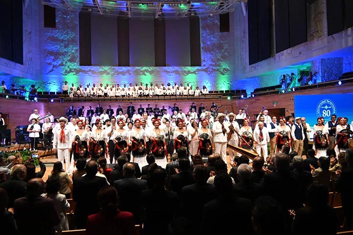 Tlen Huicani Maderas y el Coro UV, acompañados por la OUMP, presentaron “Veracruz”. Los sonidos y música de los pueblos originarios también estuvieron presentes con “Xochipitzáhuatl” y “El Querreque”, por Tlen Huicani Huasteco, el Coro UV y OUMP.