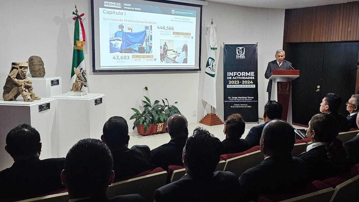 Xalapa, Ver., 18 de septiembre de 2024.- El titular de la Representación Regional del Instituto Mexicano del Seguro Social (IMSS) en Veracruz Norte, doctor Jorge Martínez Torres rindió su informe de las acciones realizadas durante el ejercicio 2023 y presentó el programa de trabajo 2024 durante la XVIII Sesión Ordinaria ante el Honorable Consejo Consultivo Delegacional.