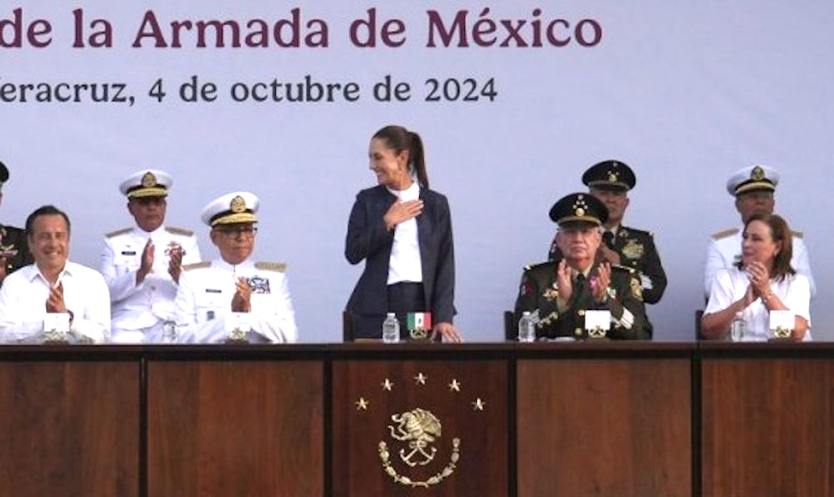 Además de los titulares del Ejército y de la Marina, Sheinbaum estuvo acompañada por Rosa Isela Rodríguez, titular de la Secretaria de Gobernació; del gobernador Cuitláhuac García, y de la gobernadora electa Rocío Nahle.