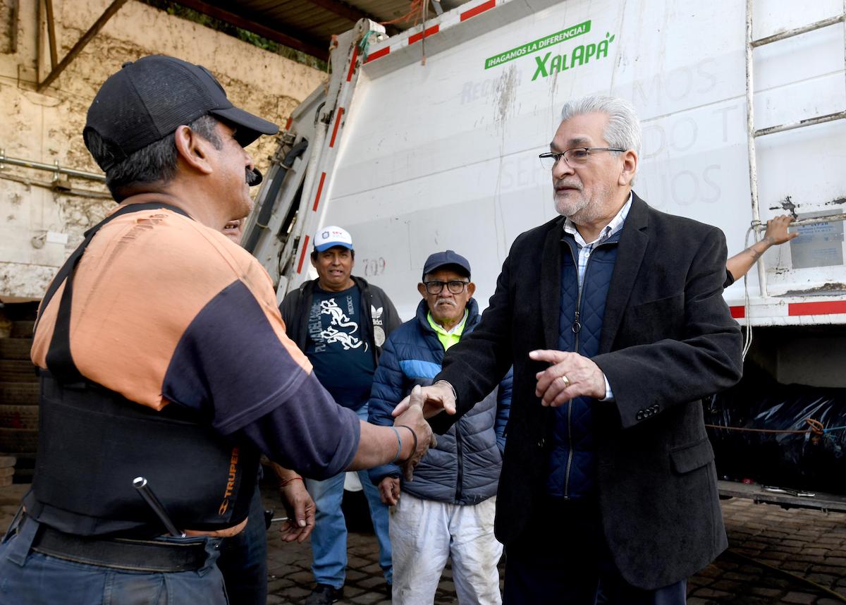 Acompañado por los regidores Carlos Ortega Murguía y Martín Victoriano Espinoza Roldán, el Edil reconoció la labor que realiza el personal operativo, de barrido, recolección, talleres y administrativo, pues su trabajo es fundamental para que Xalapa se conserve limpia y con buena imagen urbana.