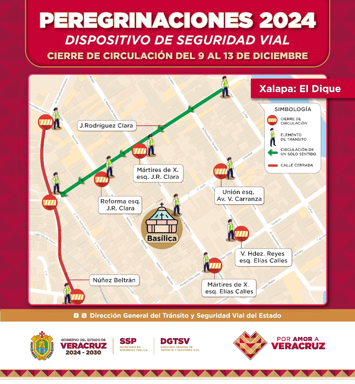 Xalapa, Ver., 11 de diciembre de 2024.- Hasta el mediodía del viernes concluirá el Operativo Vial Guadalupano 2024 en las inmediaciones de la Basílica Menor de Xalapa, ubicada en la colonia Felipe Carrillo Puerto, de la Capital, con el objetivo de garantizar la seguridad y facilitar el tránsito, informó la Secretaría de Seguridad Pública.