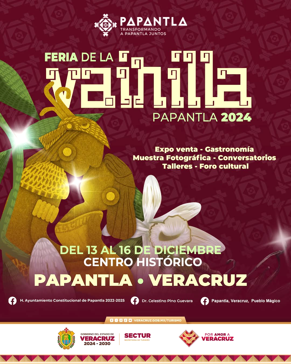 En el marco del Día Nacional de la Vainilla, que se celebra el 16 de diciembre, el Pueblo Mágico de Papantla muestra con orgullo el aroma, sabor y calidad que lo distinguen en el mundo durante cuatro días en el Centro Histórico.