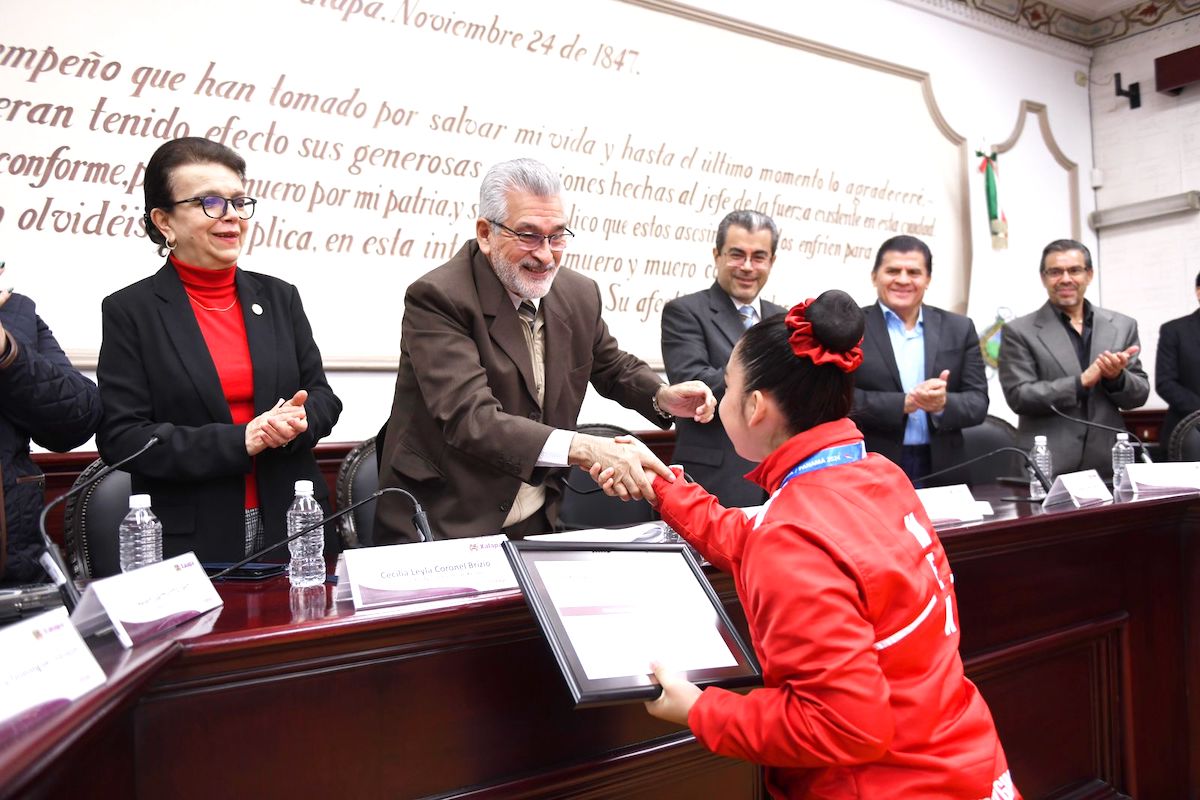 Como representante de la disciplina de Levantamiento de Pesas recibió el reconocimiento Amairani Reyes Martínez; como representante de Esgrima, Gabriel Martínez Lara; de Atletismo, Jean Paule Benítez Juanz; de Judo, Fernanda Landa Valencia; de Paratletismo, Ana Paola Morgado; de Parapowerlifting, Daniel Hernández Luna.