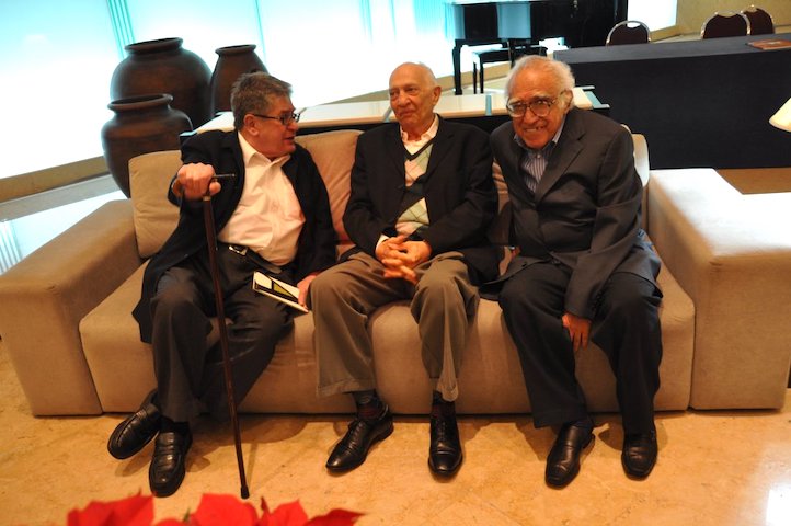 Sergio Pitol con dos de sus grandes amigos, José Emilio Pacheco y Carlos Monsiváis en dos momentos de sus vidas.
