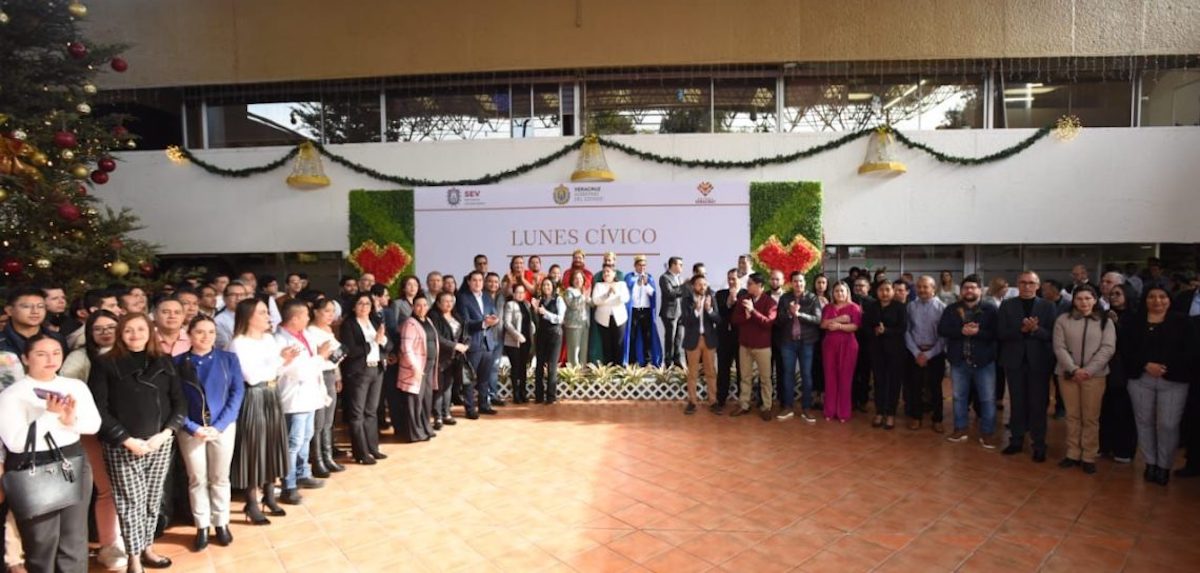 La titular de la SEV, Claudia Tello Espinosa, encabezó el Lunes Cívico y entregó juguetes a hijos de trabajadores; cortó la tradicional rosca en la explanada de oficinas centrales, acompañada por los Reyes Magos y servidores públicos.