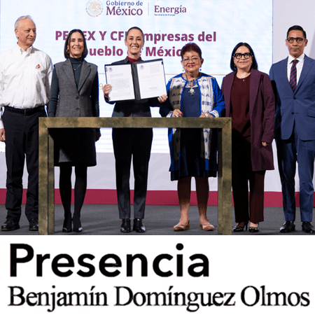 Presencia. Benjamín Domínguez Olmos * Sostuvo que serán más productivas eficientes y transparentes* Revierte la reforma energética del expresidente Enrique Peña* Sener retomará rectoría de la planeación del sector energético* Pemex tendrá contratos mixtos para exploración y extracción* CFE: nuevas reglas redefinen participación del sector privado* Comisión Reguladora de Energía e Hidrocarburos se extinguen* “Serán beneficiados el Estado y todos los sectores productivos”* Claudia dijo … Continúa leyendo Claudia Sheinbaum firma leyes para fortalecer Pemex y CFE