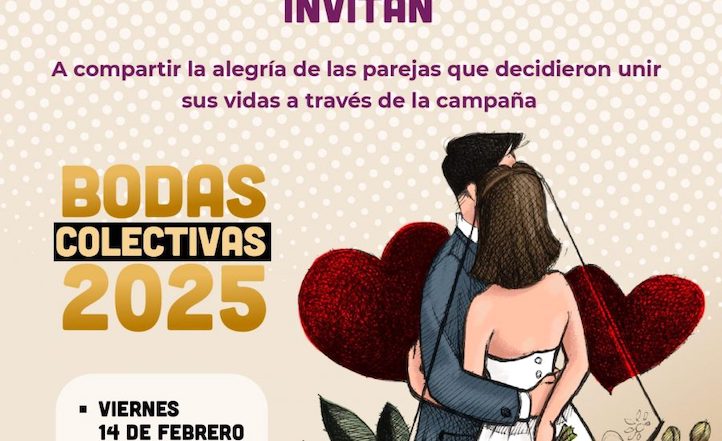 Xalapa, Ver., 07 de febrero de 2025.- Para celebrar el Día del Amor, brindar certeza jurídica y fortalecer el núcleo familiar, el Ayuntamiento y el Registro Civil de Xalapa llevarán a cabo este 14 de febrero a las 12:00 horas la ceremonia protocolaria de entrega de actas matrimoniales correspondientes a la campaña Bodas Colectivas 2025.