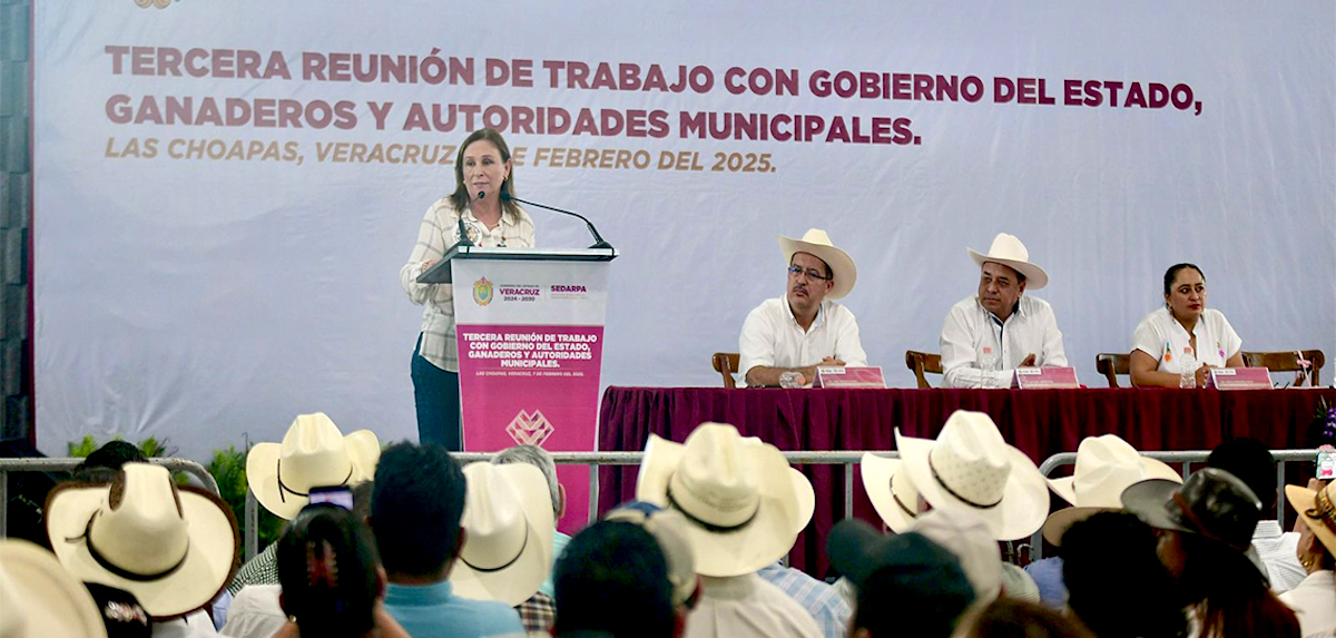 Las Choapas, Ver., 07 de febrero de 2025.- La gobernadora Rocío Nahle García encabezó la tercera reunión de seguimiento con ganaderos de la Zona B, donde anunció que su administración ofrecerá apoyos por cada animal enfermo sacrificado para evitar la propagación de la tuberculosis, brucelosis y rabia paralítica bovina.