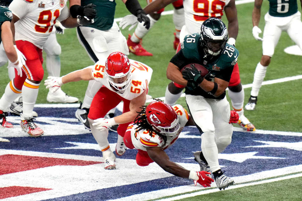 Barkley llevó el balón en la primera jugada ofensiva del Super Bowl y finalmente alcanzó la marca después de una primera mitad lenta con un acarreo de dos yardas en la última jugada de la mitad. Barkley tuvo 12 acarreos para 31 yardas, con un promedio de solo 2,6 por acarreo. Promedió 5,8 en la temporada regular.