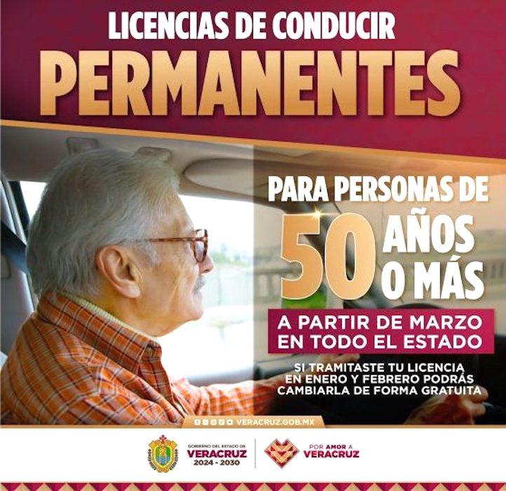 Xalapa, Ver., 10 de febrero de 2025.- A partir de marzo, las personas de 50 años en adelante podrán obtener su licencia de conducir permanente en Veracruz, anunció la gobernadora Rocío Nahle García en entrevista para Quatro Media Comunicaciones.