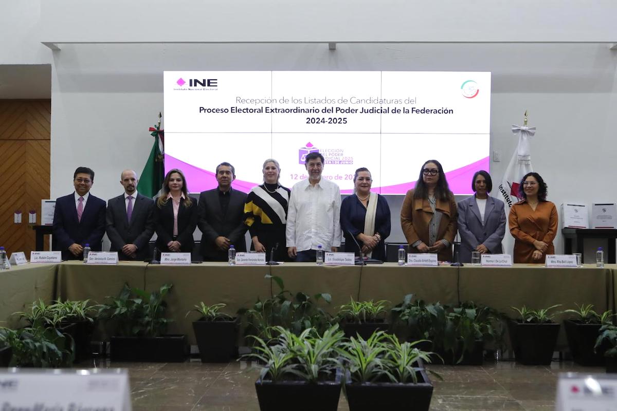 Ciudad de México, 12 de febrero de 2025.- El Instituto Nacional Electoral (INE) recibió los listados de las candidaturas que contenderán en el Proceso Electoral Extraordinario para la elección de diversos cargos del Poder Judicial de la Federación (PEEPJF) 2024-2025, por parte del Presidente de la Mesa Directiva del Senado de la República, Gerardo Fernández Noroña, a efecto de que la autoridad electoral organice el proceso electivo.