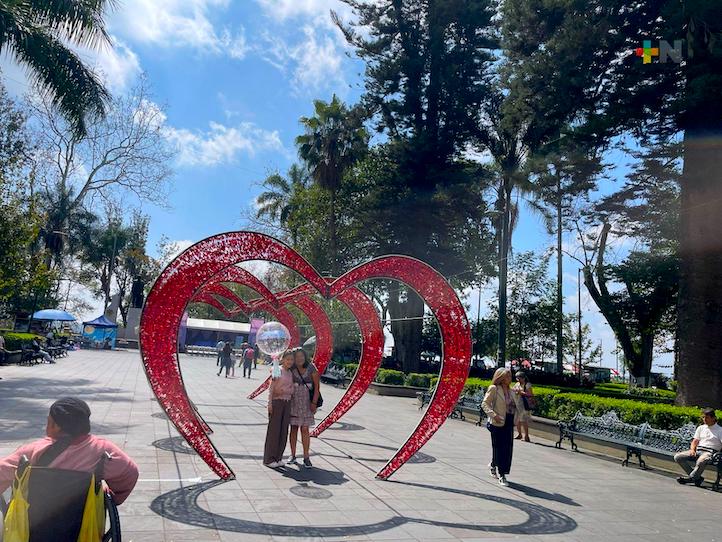Mientras se acerca la fecha, algunos aprovechan para tomarse fotos juntos o aprovechan espacios públicos como los adornos alusivos a estas fechas que están colocados en el parque Benito Juárez en Xalapa.
