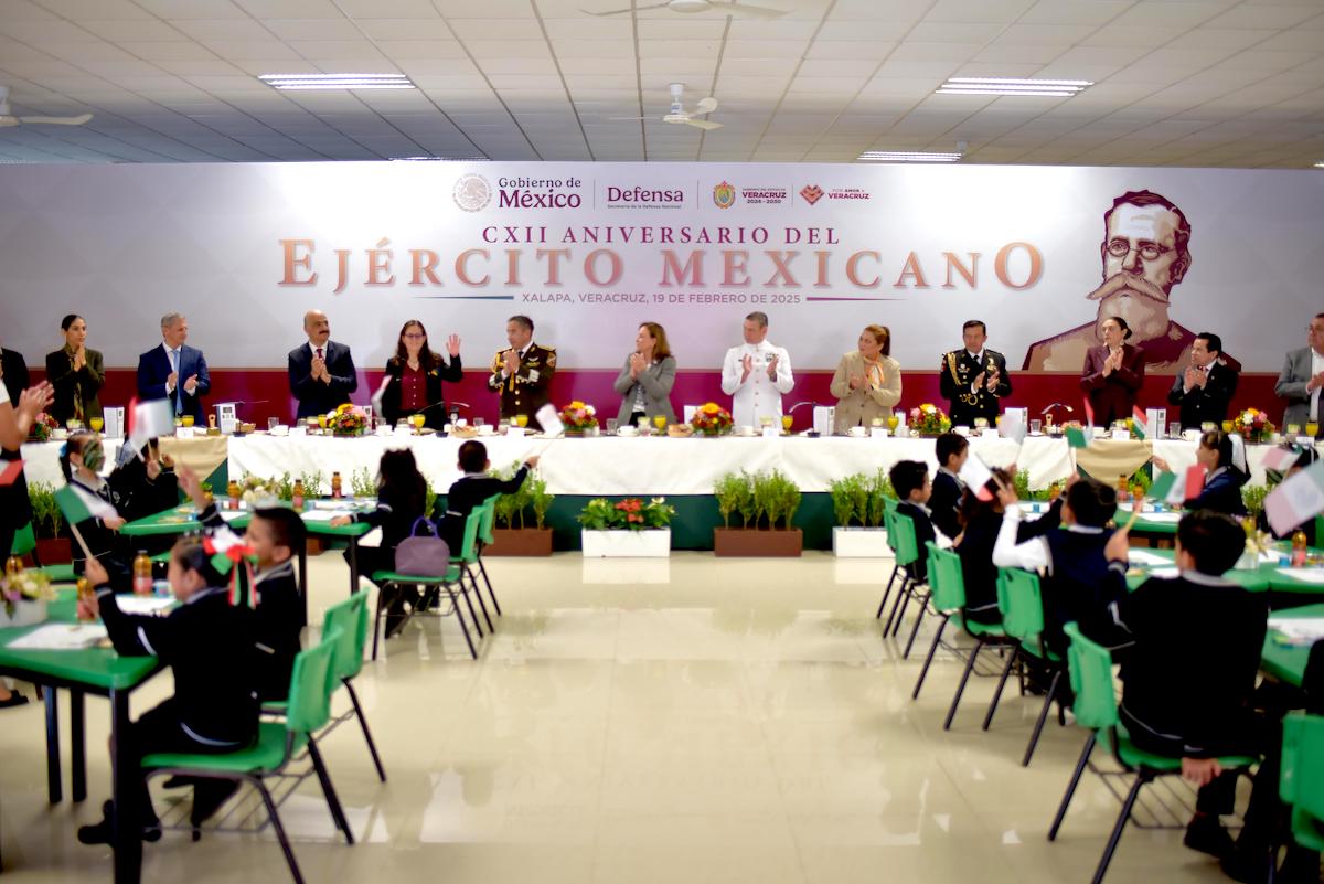 Xalapa, Ver., 19 de febrero de 2025.- En representación de la LXVII Legislatura del estado de Veracruz, la presidenta de la Mesa Directiva, diputada Tanya Carola Viveros Cházaro, acudió a la conmemoración del CXII aniversario del Ejército Mexicano, acto encabezado por la gobernadora de Veracruz, Rocío Nahle García, en las instalaciones de la 26 zona militar El Lencero.
