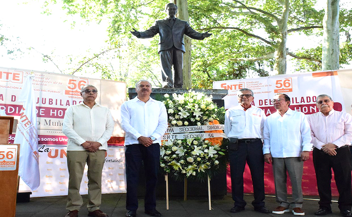 Ante el monumento al exgobernador Marco Antonio Muñoz Turnbull y en presencia de líderes y agremiados del Sindicato Nacional de Trabajadores de la Educación (SNTE) Sección 56, el director general del Instituto, Luis Octavio Hernández Lara, señaló que el sistema de pensiones del Estado será fortalecido.