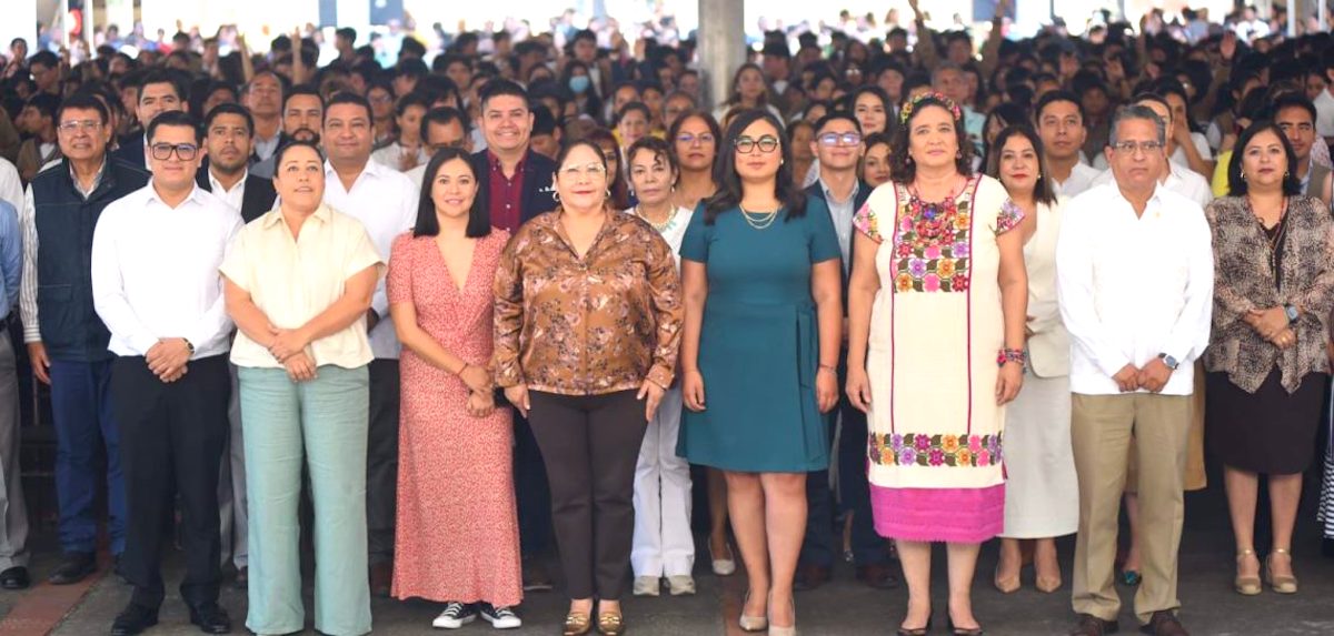 En la explanada de la Benemérita Escuela Normal Veracruzana Enrique C. Rébsamen se realizó el encuentro, presidido por la subsecretaria de Educación Básica del Gobierno de México, Angélica Noemí Juárez Pérez; la titular de la SEV, Claudia Tello Espinosa, y la subsecretaria de Prevención y Participación Ciudadana de la Secretaría de Seguridad Pública (SSP), Ciria Ivonne Márquez Talamantes.