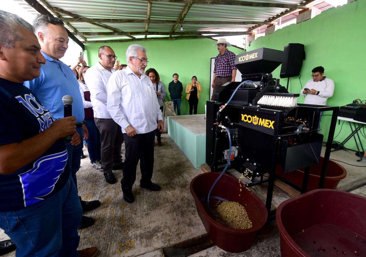 En el evento se realizó la entrega oficial del Centro de Beneficiado de Café al ejido Emiliano Zapata, lo que contribuirá a mejorar el proceso de transformación del café y fortalecer la economía de los productores.