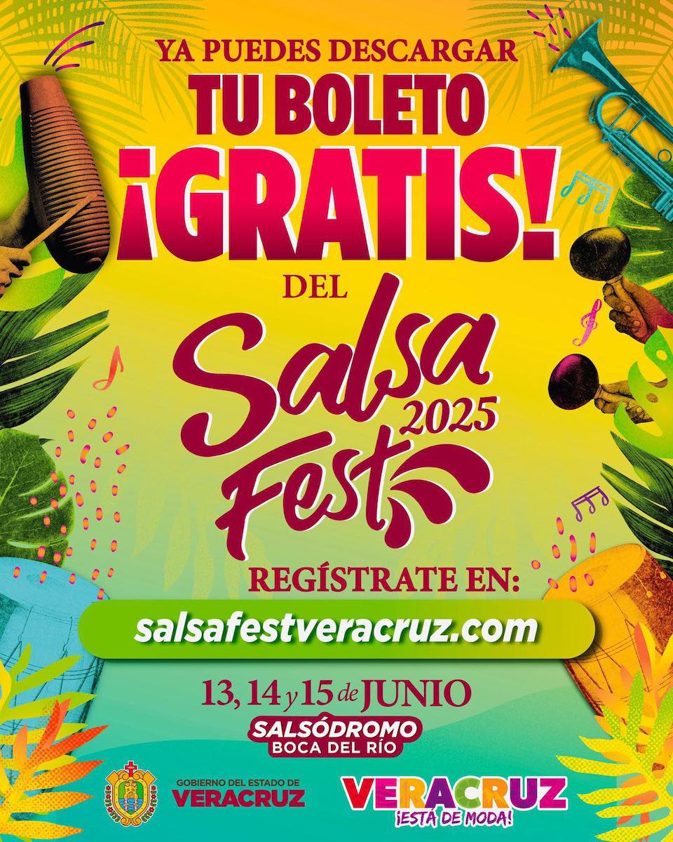 Xalapa, Ver., 03 de junio de 2025.- El Gobierno del Estado habilitó el registro para obtener los boletos gratuitos del Salsa Fest, uno de los más importantes del mundo en su género, que se llevará a cabo del 13 al 15 de junio.