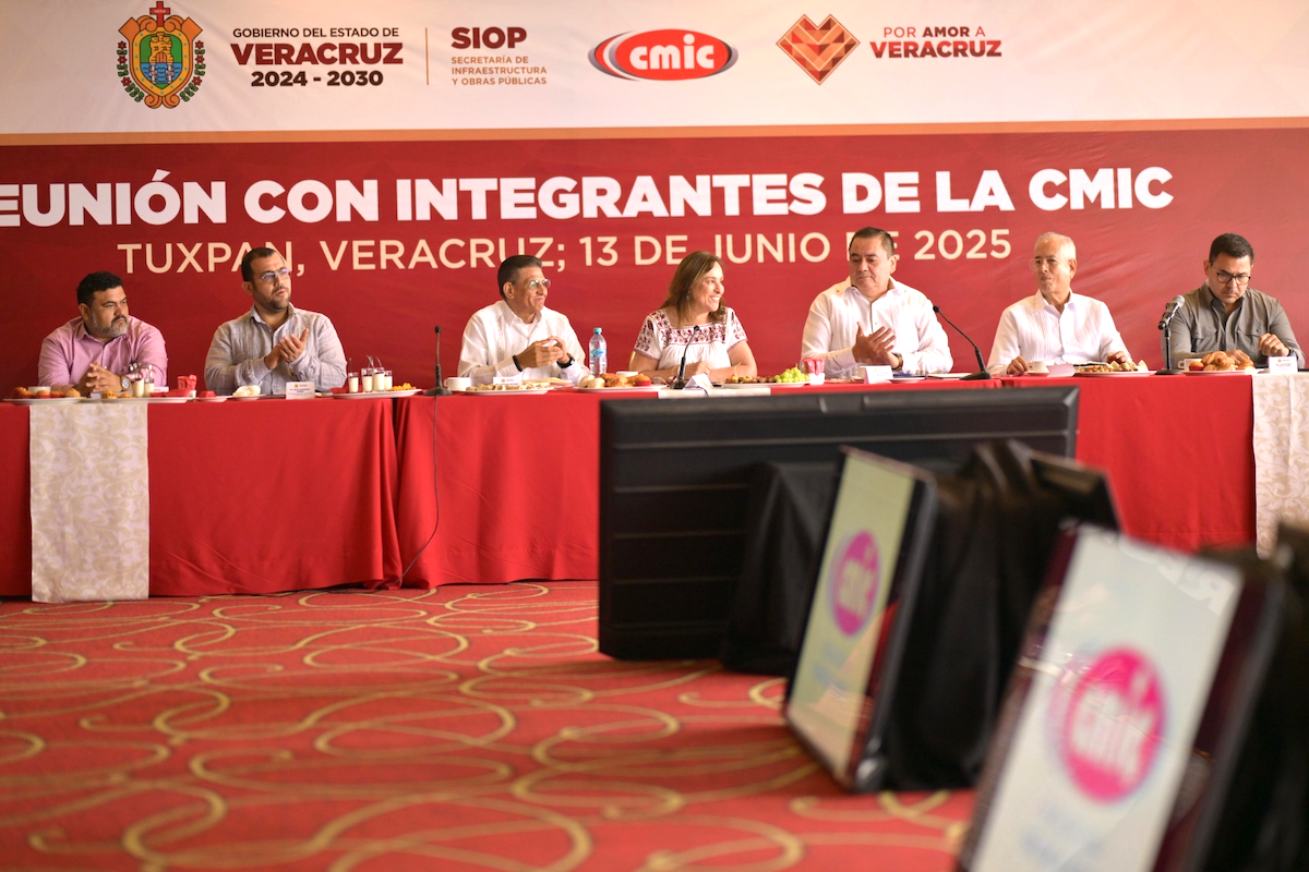 Durante reunión con integrantes de la Cámara Mexicana de la Industria de la Construcción (CMIC), delegación Veracruz Norte, destacó que estas obras forman parte de la estrategia para mejorar la conectividad, elevar la calidad de vida y generar empleos en beneficio de las y los veracruzanos.