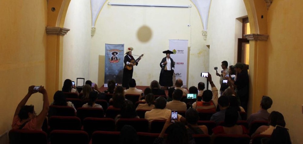 Previo a la rueda de prensa, que presidió Hugo López y Deyhdra Medina Cabrera, integrantes de la asociación Artistas independientes de Xalapa A.C. (AiX) y las actrices Silvia Santos y Mariana Maldonado, protagonistas de la obra, fue escenificada un fragmento de la obra, Inspirada en los corridos populares “La muerte de Zapata” y “El agrarista”.