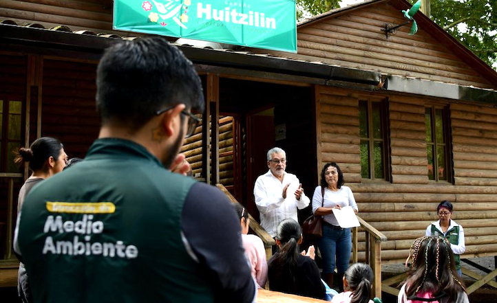 Destacó que además de las labores de rehabilitación, hoy se inició en esta cabaña un curso de verano para niñas y niños de 8 a 12 años, mediante el que se promoverá el cuidado de la biodiversidad, la protección ambiental y el consumo responsable.