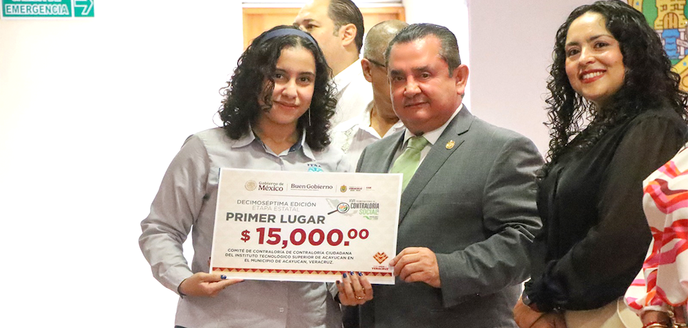 Xalapa, Ver., 11 de agosto de 2025.- El Comité de Contraloría Ciudadana del Instituto Tecnológico Superior de Acayucan obtuvo el primer lugar en la etapa estatal del Premio Nacional de Contraloría Social 2025, dentro de la categoría Acciones de los Comités, con lo que representará a Veracruz en la fase nacional de este certamen que reconoce las mejores prácticas de vigilancia ciudadana sobre el uso de recursos públicos.