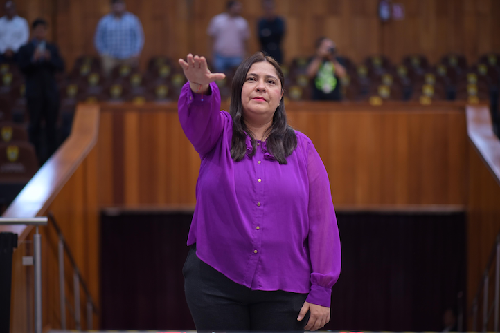 En virtud de lo anterior, la presidenta de la Mesa Directiva, diputada Tanya Carola Viveros Cházaro, designó a los diputados Esteban Bautista Hernández, Carlos Marcelo Ruiz Sánchez, Enrique Cambranis Torres y a la legisladora Montserrat Ortega Ruiz para que recibieran y condujeran a la diputada Laura Nayeli Mejía Larios al Recinto Oficial de Sesiones, donde rindió la protesta de ley.