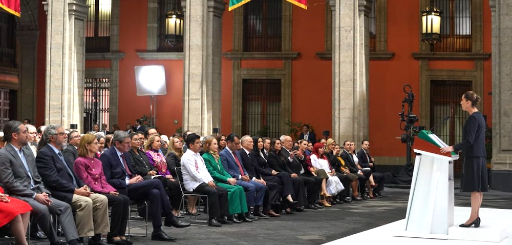 “Hoy las mujeres en México estamos marcando otro rumbo. Claudia Sheinbaum es ejemplo e inspiración para quienes tenemos la responsabilidad de gobernar, porque todos los días trabaja, resuelve y toma decisiones con inteligencia frente a una oposición beligerante, sin perder la calma ni el nivel político que merece la República”.