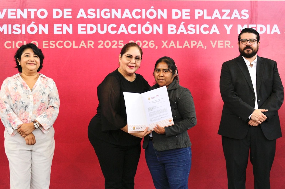Xalapa, Ver., 04 Septiembre 2025.- Con el propósito de fortalecer la cobertura docente en las escuelas de nivel básico, la Secretaría de Educación de Veracruz (SEV) asignó 136 plazas definitivas de sostenimiento federal, correspondientes al ciclo escolar 2025-2026, conforme al listado nominal establecido.