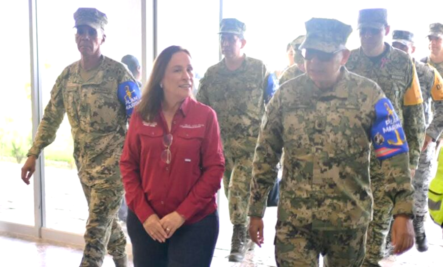 Poza Rica, Ver., 25 Octubre 2025.- La gobernadora Rocío Nahle García sostuvo una reunión de seguimiento y evaluación con el secretario de Marina, almirante Raymundo Pedro Morales Ángeles, a fin de conocer los avances de los trabajos realizados desde hace tres semanas, cuando inició la aplicación del Plan Marina, derivado de la contingencia provocada por la depresión tropical 90E.