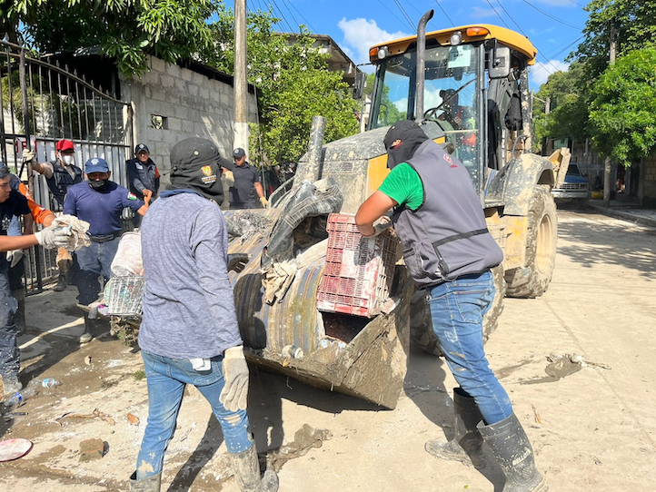 Su labor ha sido esencial para restaurar espacios públicos y distribuir víveres de primera necesidad como despensas, kits de limpieza y alimento para mascotas.