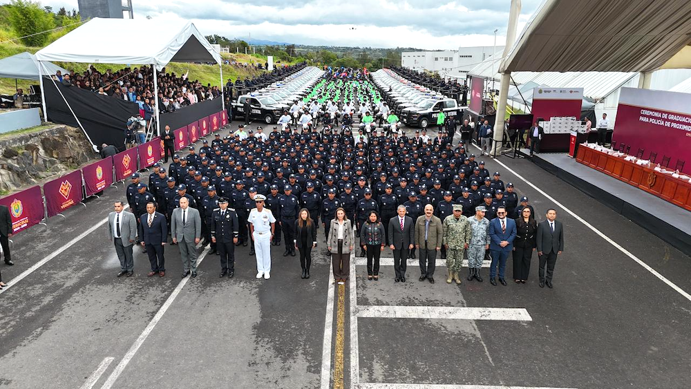 Durante la ceremonia de graduación y jura de bandera del Curso de Formación Inicial para Policía de Proximidad Estatal, realizada en el Centro de Estudios e Investigación en Seguridad, la titular del Ejecutivo destacó la inclusión de las mujeres dentro de las filas de la dependencia.