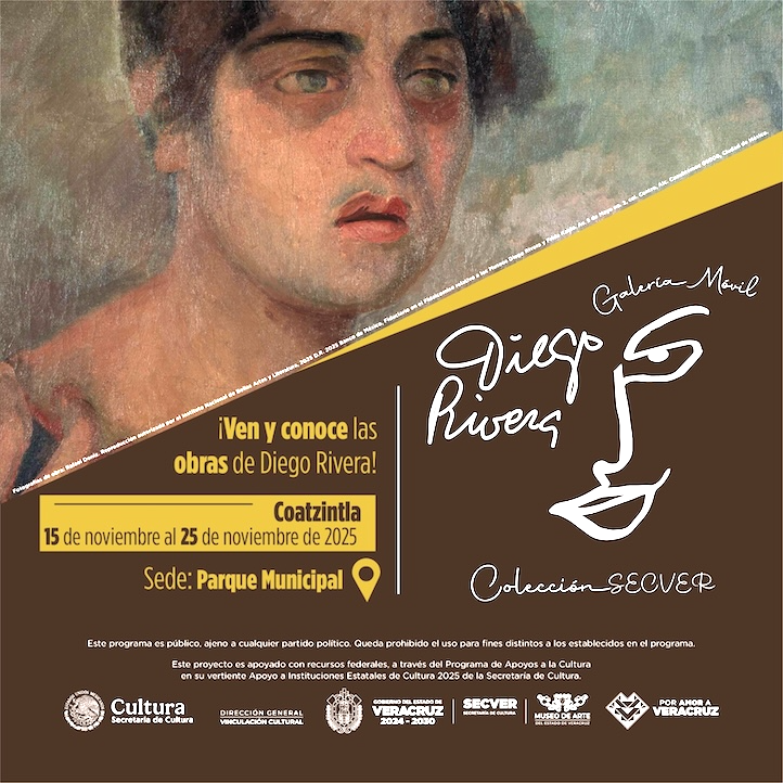 Xalapa, Ver., 21 Noviembre 2025.- La Secretaría de Cultura de Veracruz (Secver), en colaboración con el ayuntamiento de Coatzintla, invita a conocer la Galería Móvil 2025: Diego Rivera, la cual estará instalada en el parque municipal hasta el próximo 25 de noviembre.