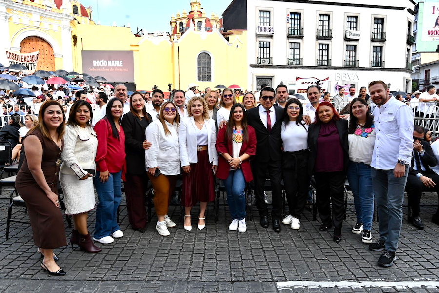 Xalapa, Ver., 30 Noviembre 2025.- Diputadas y diputados de la LXVII Legislatura del estado, encabezados por la presidenta de la Mesa Directiva, Naomi Edith Gómez Santos, y por el presidente de la Junta de Coordinación Política, Esteban Bautista Hernández, acudieron a la ceremonia del Primer Informe de Gobierno de la gobernadora de Veracruz, Rocío Nahle García, realizado en la plaza Lerdo de la ciudad capital.