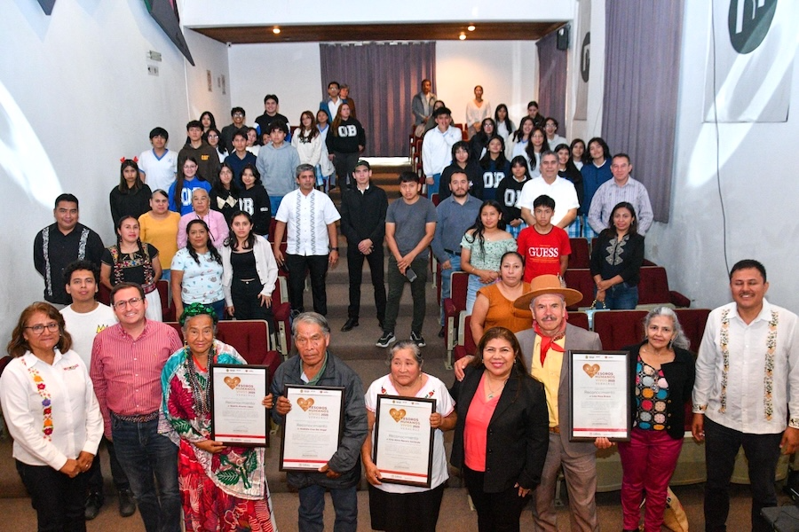 Recibieron reconocimientos Ciria Alicia Macario Xochicale, partera tradicional y dadora de vida; Anatolio Cruz del Ángel, por su aporte al patrimonio cultural comunitario; Lino Mora Rivera, por la creación de máscaras tradicionales, y Felipe Crescencio Cruz, por lalabor artística con la danza de los matachines.