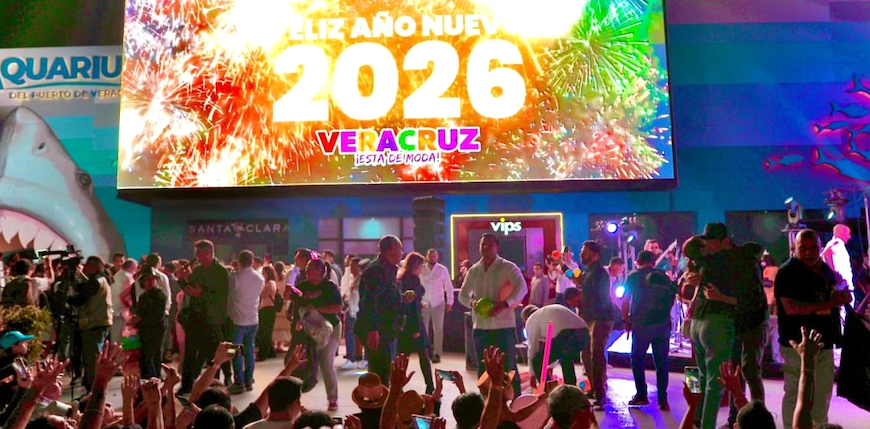 Gobernadora Nahle convive con todos Veracruz, Ver. 01 Enero 2026.- Miles de veracruzanas y veracruzanos, así como visitantes nacionales y extranjeros, dieron la bienvenida al 2026 en la explanada del Aquarium del Puerto de Veracruz y en sus pantallas exteriores, donde se realizó el tradicional conteo regresivo hasta las 00:00 horas, seguido de un espectáculo de luces que iluminó el cielo, en un ambiente de alegría, … Continúa leyendo Miles recibieron con fiesta de luz y alegría familiar el 2026 en Aquiarium de Veracruz